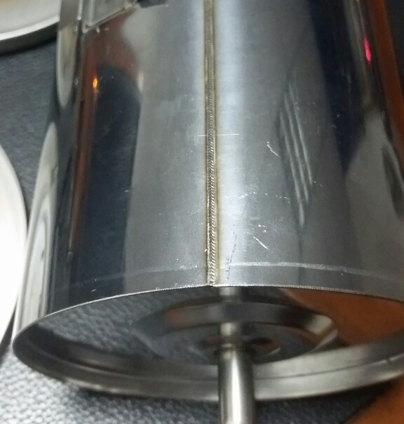 一個不銹鋼水桶內膽,多處采用了激光焊接技術。