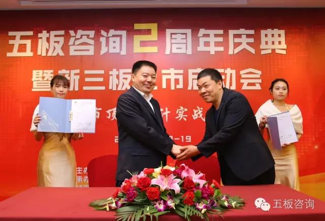 五板的客戶見(jiàn)證了五板咨詢兩年時(shí)間從50萬(wàn)注冊(cè)做大到如今1個(gè)億的市值,五板咨詢之所以有了今天的成就,源之于五板咨詢?nèi)酥琳?、至誠(chéng)的高貴品質(zhì);源之于合作伙伴與五板咨詢風(fēng)雨同舟至深情誼;源之于各位股東、客戶、朋友的關(guān)懷和支持。在五板咨詢成立2周年之際,我們五板也正式啟動(dòng)新三板上市計(jì)劃。華商22期張建兄的班長(zhǎng)——山西新海有限公司帥丹民董事長(zhǎng)代表22期華商到場(chǎng)祝賀。