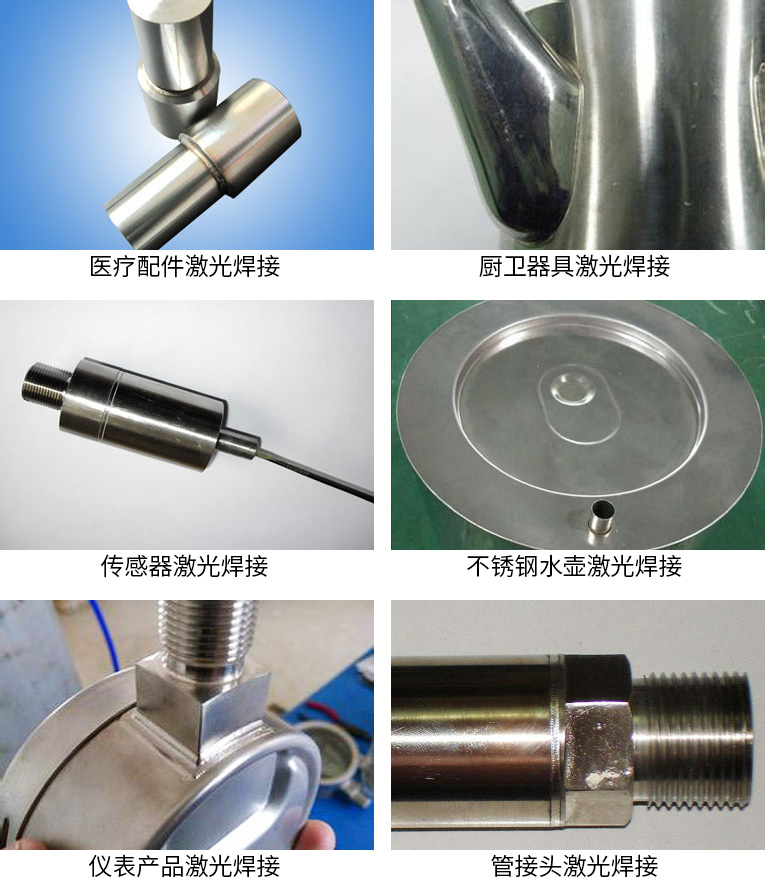 現(xiàn)廣泛應用的領域有手機外殼、筆記本電腦外殼、五金構件、廚具衛(wèi)浴、軍工制造、電池外殼、動力電池、儀器儀表、馬達、IT手機構件、硅鋼片、汽車配件、激光熔覆、醫(yī)療器械等精密零件焊接。