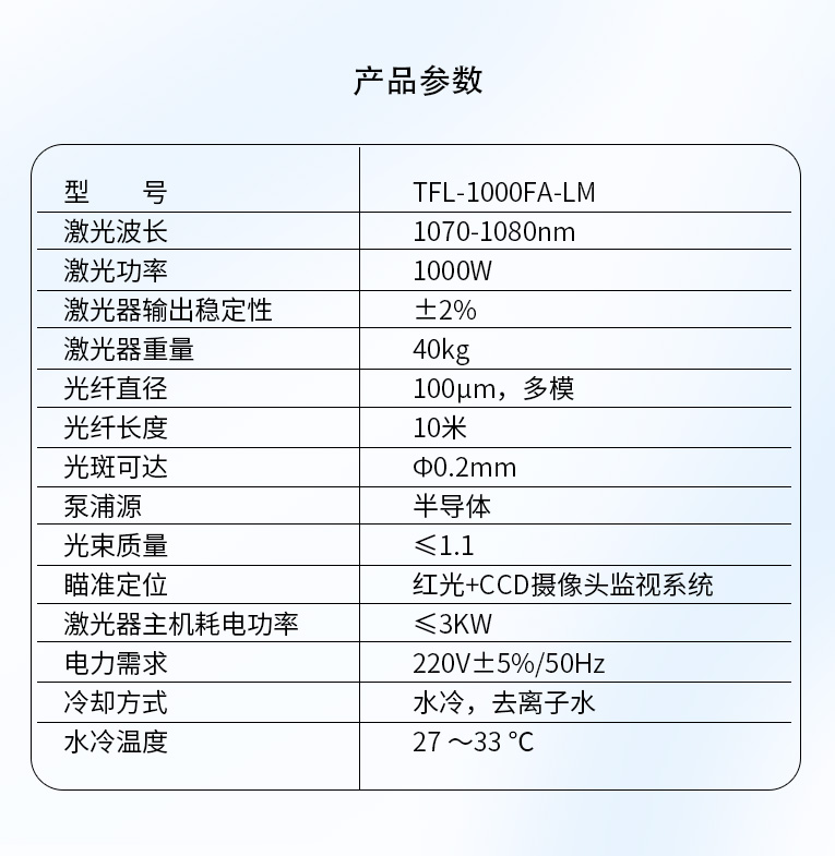通發激光光纖激光器配置